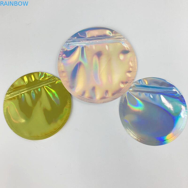 3.5 ग्राम होलोग्राम सर्कल आकार का माइलर बैग कस्टम मुद्रित सिक्का जिपर पैकेजिंग बैग होलोग्राफिक गोल बैग